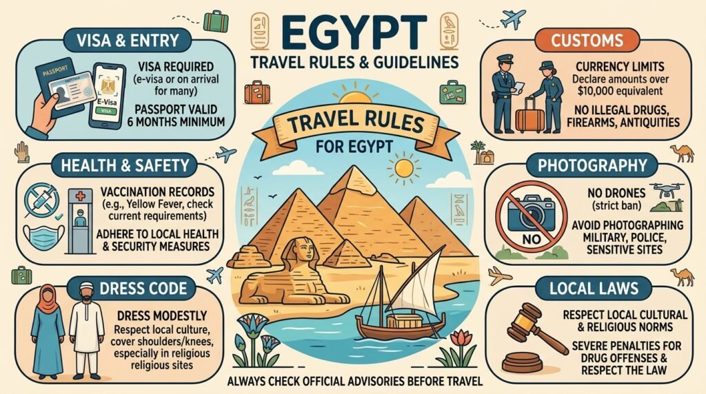 Planning a trip to Egypt? This updated 2026 guide explains the Egypt travel rules, visa requirements, passport validity, and essential entry information for tourists visiting Egypt.