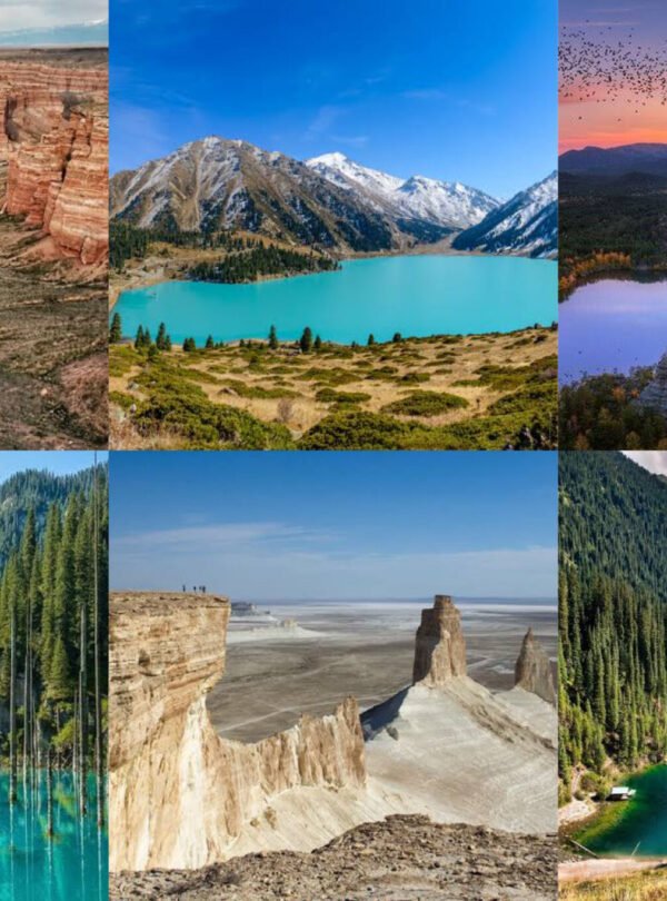 The Kolsai Lakes are renowned for their crystal-clear turquoise waters, surrounded by dense coniferous forests, meadows, and snow-capped peaks. The area is rich in biodiversity, with various plant and animal species, including rare and endangered ones. The lakes and their surroundings offer excellent opportunities for hiking, trekking, camping, and photography.